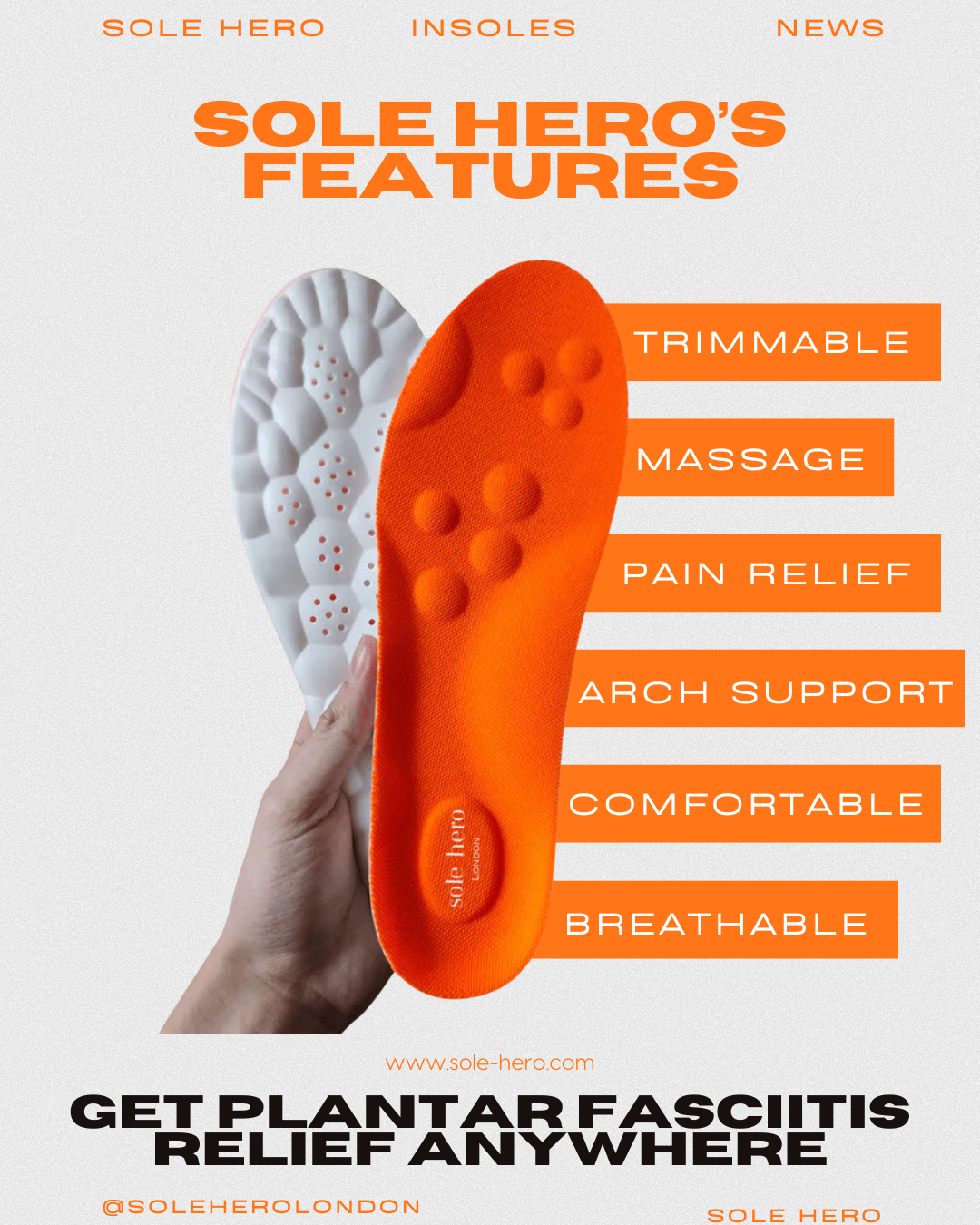 Meet Our Insoles - the ultimate comfort for your feet! Designed to fit into any shoe type and fit any foot size! With perfectly placed massage & support points, guaranteed to give all day comfort!