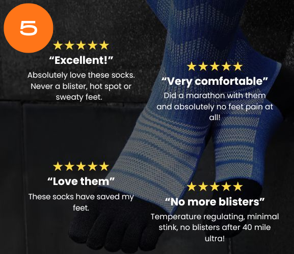 Less friction + better airflow = happier feet. 86% of our customers report fewer post-run aches and faster recovery times, letting you train harder, chase PRs, and hit peak performance without downtime.